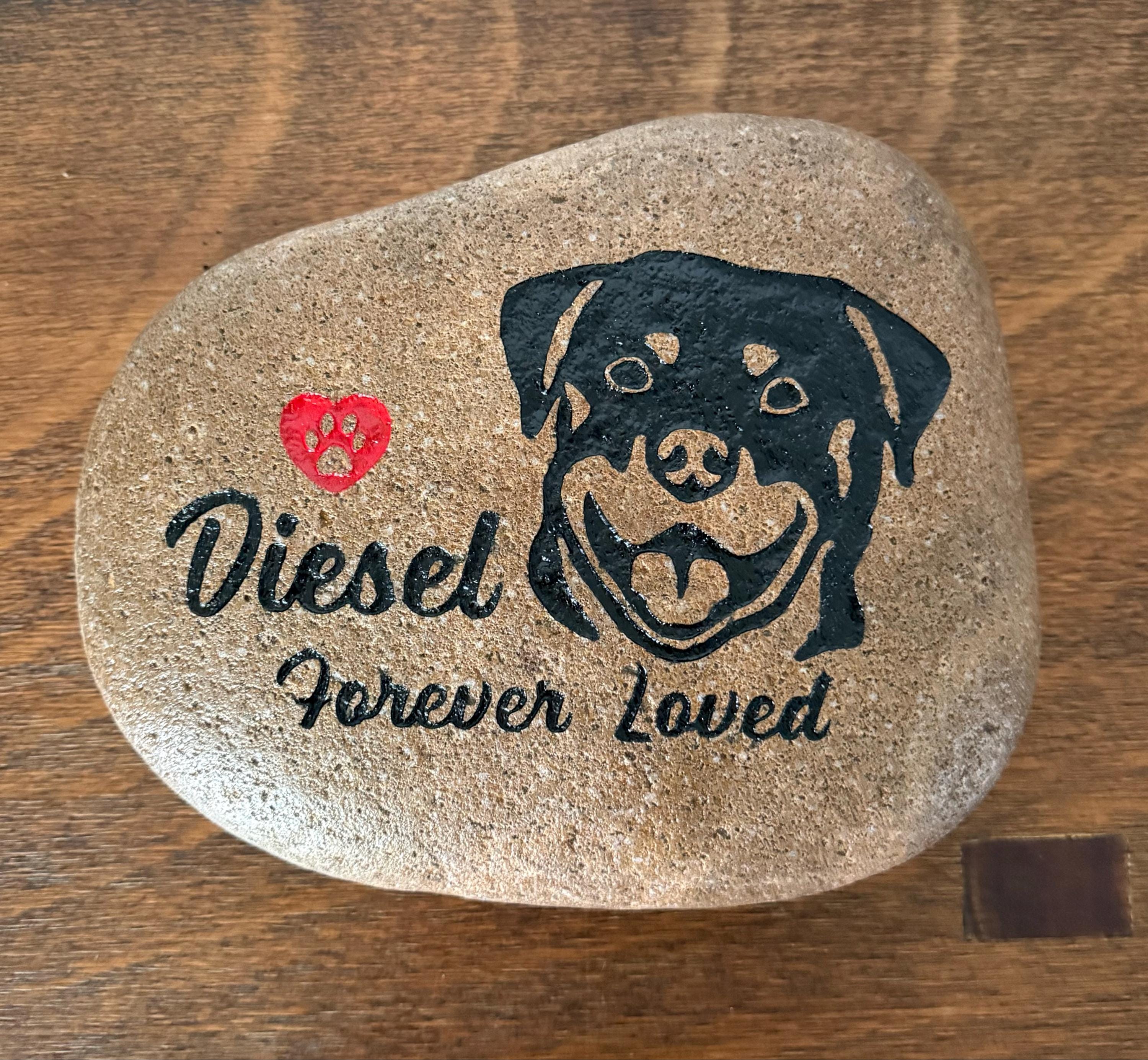 IMPORTANT::::::PLEASE REFER TO THE CHART IN THE PHOTOS FOR SIZE AND OPTIONS INFORMATION. All Breeds Pet Memorial Stone.